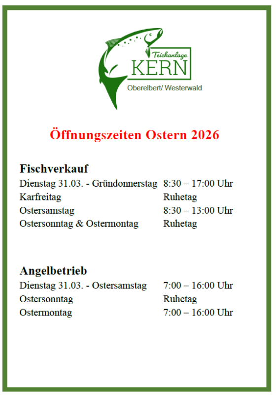 UncategorizedÖffnungszeiten Ostern 2026 https://www.teichanlage-kern.de/wp-content/uploads/Logo-Teichanlage-Kern-Oberelbert.png 0 0 CaROkeKal https://www.teichanlage-kern.de/wp-content/uploads/Logo-Teichanlage-Kern-Oberelbert.png CaROkeKal2026-03-19 13:25:482026-03-19 13:25:55Öffnungszeiten Ostern 2026